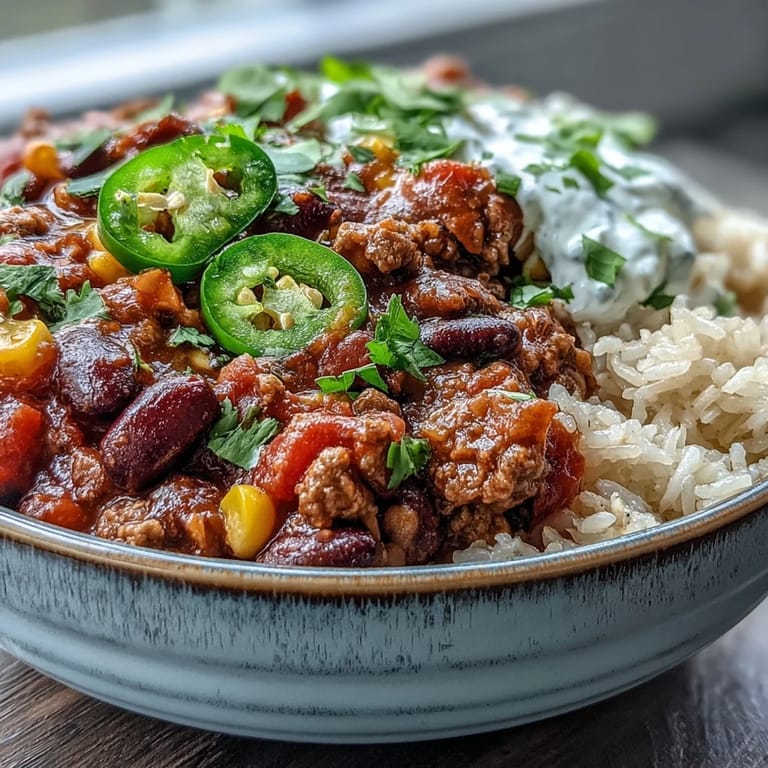 Merken An afternoon when my kitchen smelled like cumin and caramelized onions, I realized chili wasn't just winter food—it was the answer to those evenings when I needed something warm, filling, and honest. My friend showed up unexpectedly with stories about his grandmother's kitchen, and I threw together whatever I had in the pantry. That bowl of chili over rice became our conversation starter, the kind of meal that lets people relax and actually talk to each other. Now I make it whenever I want to turn a regular day into something worth remembering.