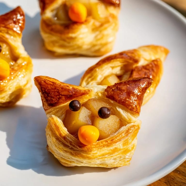 Merken Verspielte, zarte Gebäckbissen, gefüllt mit gewürztem Apfel und Birne, in Form von niedlichen Füchsen—perfekt für Herbsttreffen oder als spaßiger Genuss für die Familie.