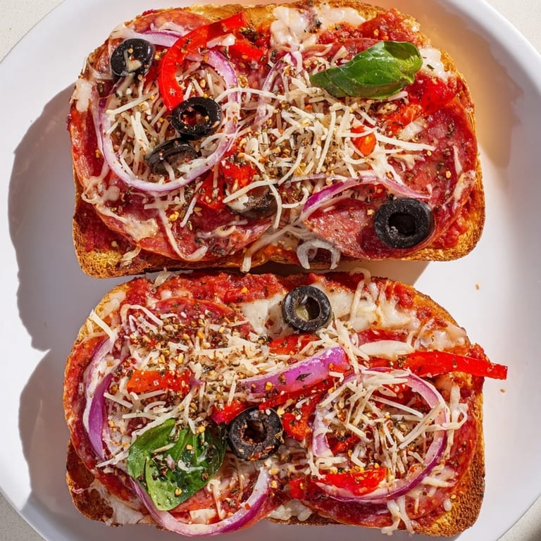 Merken Ich entdeckte dieses Rezept an einem verregneten Freitag, als ich unbedingt etwas Wärmeres und Herzhafteres wollte als nur Toast. Mein Kühlschrank hatte ein paar dicke Scheiben Sauerteig, und ich beschloss, etwas Experimentelles zu versuchen, indem ich alle meine liebsten Käsesorten zusammenmischte. Das Ergebnis war so unglaublich, dass ich es ständig mache, wenn Freunde vorbeikommen oder wenn ich schnell etwas Beeindruckendes zum Mittagessen brauche. Diese verbesserte Variante des viralen Pizza-Toasts ist nicht einfach nur Essen, sondern ein kleines Stück Komfort auf einem Teller. Es ist einfach zu machen, aber sieht und schmeckt wie etwas Besonderes.