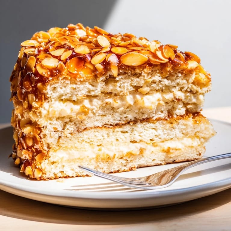Merken Bienenstich ist ein klassisches deutsches Dessert mit einem fluffigen Hefekuchenboden, cremiger Vanillecremefüllung und einem karamellisierten Mandel-Honig-Topping. Dieses Kuchenrezept vereint zarte Texturen und feine Aromen, die Kaffeestunden unvergesslich machen.
