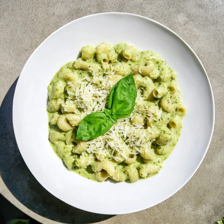 Merken Experience a vibrant twist on a childhood classic with this Creamy Avocado Pesto Mac. This recipe combines a luscious, heart-healthy avocado and fresh basil pesto sauce with tender pasta, creating a meal that is both nutritious and incredibly flavorful. Perfect for a quick 30-minute dinner, it's a vegetarian fusion dish that feels both indulgent and fresh.