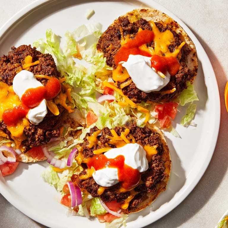 Merken Ich entdeckte diese Tacos an einem Freitagabend, als ich beim Ausmisten meines Kühlschranks nur noch Rindfleisch, Tortillas und ein paar Gemüsereste fand. Statt die übliche Auflaufform hervorzuholen, legte ich spontan ein Stück Fleisch direkt auf die warme Tortilla und drückte es platt – und plötzlich hatte ich etwas Knackiges, Ehrliches und Unglaublich Leckeres erschaffen. Keine komplizierten Schritte, keine langen Zutatenlisten, nur purer, knuspriger Geschmack. Seitdem sind diese Smash Tacos mein Geheimtipp für Momente, wenn es schnell gehen muss, aber trotzdem etwas Besonderes auf dem Teller landen soll.