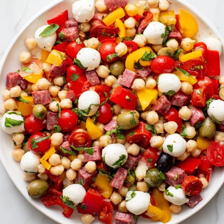 This recipe is all about harmony. The bite of the red onion and spicy pepperoncini perfectly balances the mild mozzarella pearls and savory salami cubes. It's a versatile dish that works just as well at a picnic as it does for a weekday lunch prep.