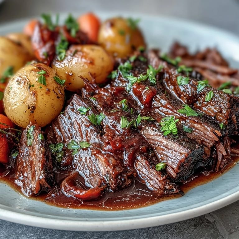 Ich habe gelernt, dass die Geduld beim Anbraten den Unterschied zwischen einem guten und einem großartigen Pot Roast ausmacht. Wenn Sie die Hitze zu früh drehen, verpassen Sie diese köstlichen karamellisierten Noten, die später die ganze Soße durchziehen. Nehmen Sie sich die fünf Minuten pro Seite Zeit und genießen Sie das Zischen und Prasseln.
