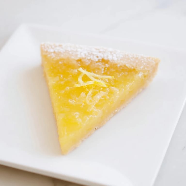 Ein buttriger Mürbeteig aus Mehl, Zucker und kalter Butter bildet eine feste und knusprige Basis für die Zitronenfüllung.